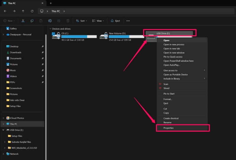 3. Localice la unidaden el que se guarda la carpeta,haga clic derecho sobre ély seleccione elOpción de propiedadesen el menú contextual.