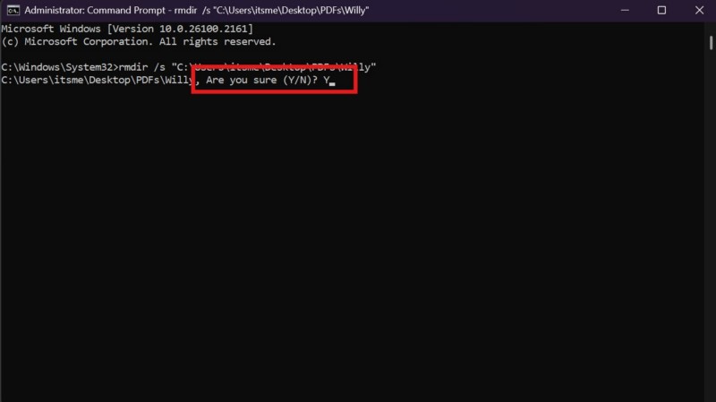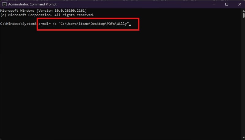 3. Elimine la carpeta usando el símbolo del sistema en su PC o computadora portátil con Windows 11