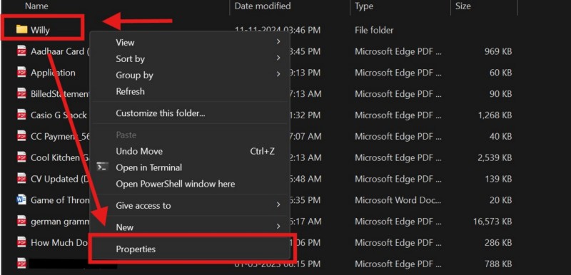 Entonces, siga los pasos a continuación para modificar la configuración de permisos de una carpeta en su PC o computadora portátil con Windows 11: