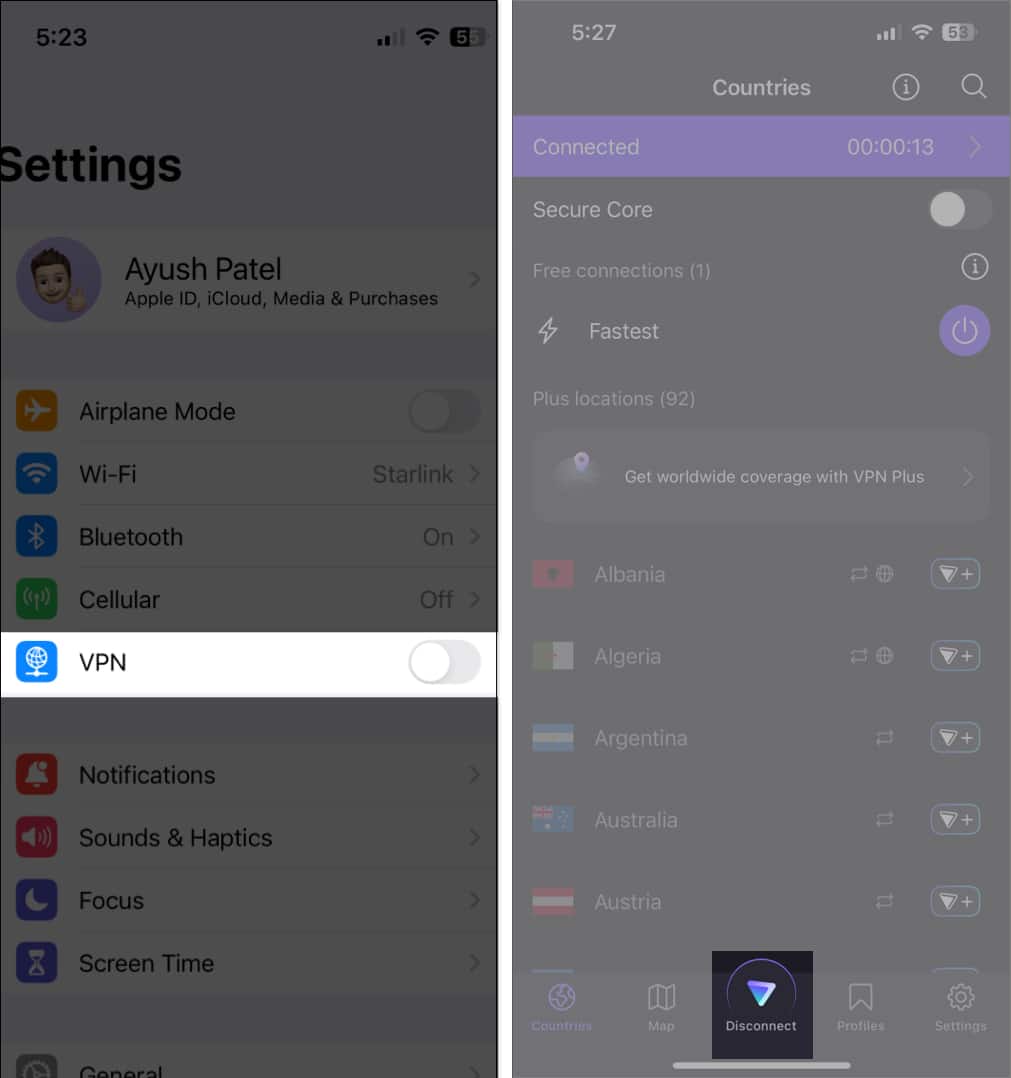 3. Asegúrese de que su iPhone no esté conectado a una VPN