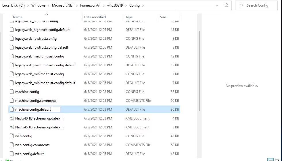 Paso 4:Luego, haga clic derecho enmáquina. config.el valor predeterminadoarchivo y elija Cambiar nombre en el menú contextual.