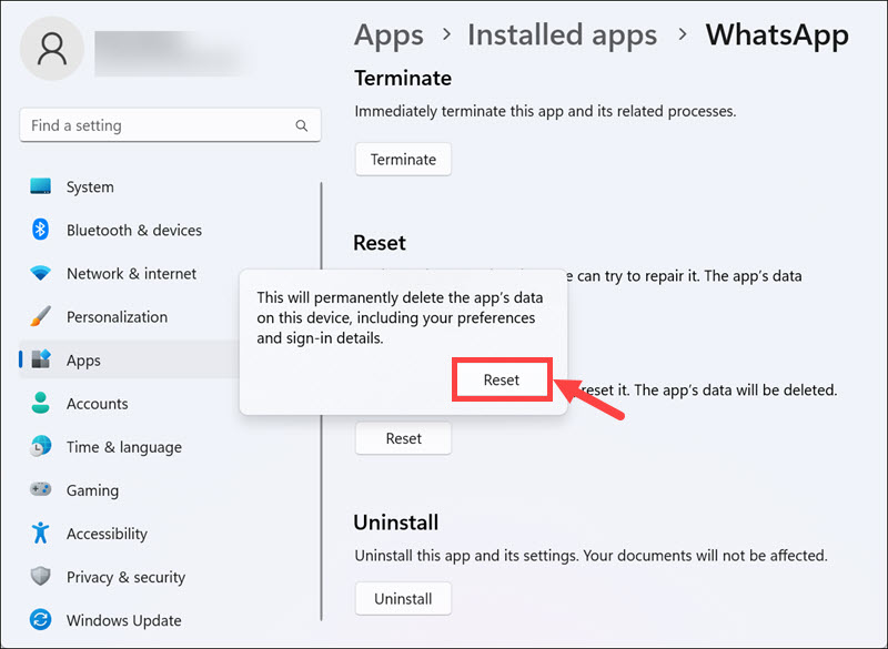 Si ninguno de los pasos anteriores soluciona su problema, es posible que deba reinstalar la aplicación WhatsApp Desktop en su sistema Windows 11.