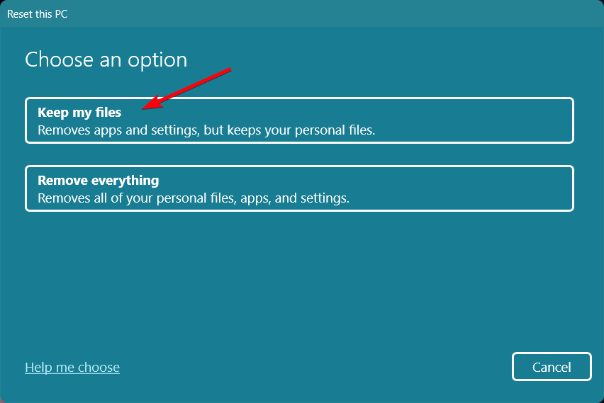 3.Hacer clic enconservar mis archivosyrestablecer la computadora.