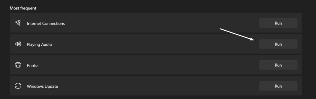 2.Proceder alOtros solucionadores de problemas, buscarReproducción de audioy haga clic enCorrerbotón al lado.