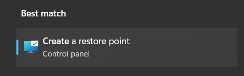 1.Presione elclave de Windows, tipopunto de restauraciónen el cuadro de búsqueda y seleccioneCrear un punto de restauraciónde los resultados.