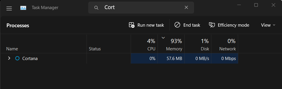 2.buscar elCortanaproceso en elAdministrador de tareasutilidad bajo elProcesossección.