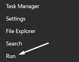 1.Haga clic derecho enBotón de inicioen la barra de tareas de su sistema y seleccioneCorrerdesde allí para abrir elCorrerutilidad.