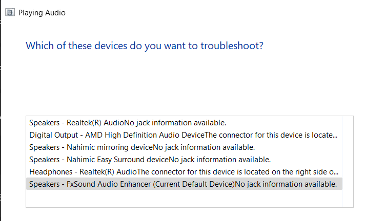 3.Seleccione su dispositivo de reproducción de audio actual en la siguiente ventana y haga clic enPróximobotón.