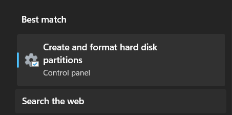 1.Utilice elWindows + Sacceso directo para abrir la búsqueda y escribirCrear y formatear particiones del disco duroen ello.
