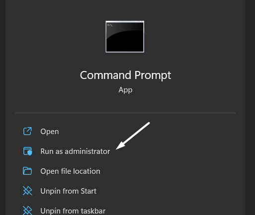 2.Hacer clic enEjecutar como administradoren los resultados de la búsqueda para abrir el símbolo del sistema con derechos de administrador.