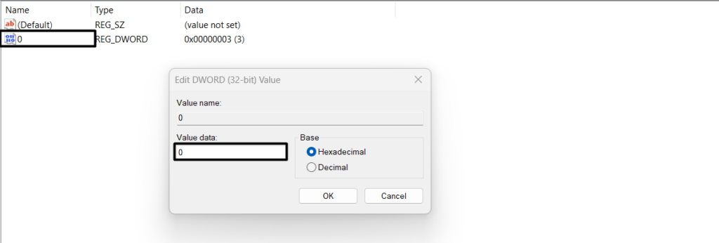 5.Haga doble clic en0en el panel derecho, agregue0en elDatos de valor:campo y haga clic enDE ACUERDOpara guardar todos estos cambios.