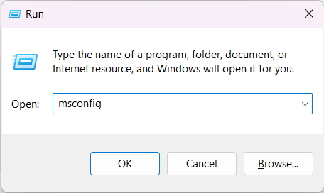 1.Presione el atajo de Windows + R para abrir elEjecutar programay escribe msconfig en su búsqueda.