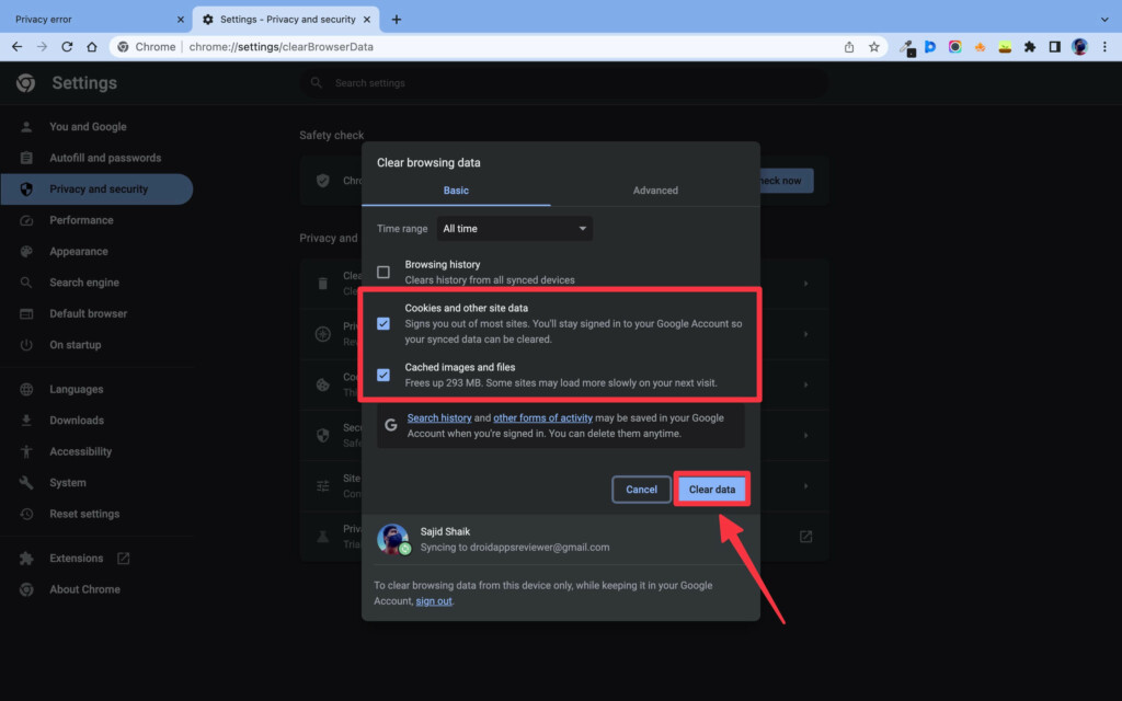 Puede probar las indicaciones mencionadas para aprender a borrar las cookies y los archivos de caché de Google Chrome: