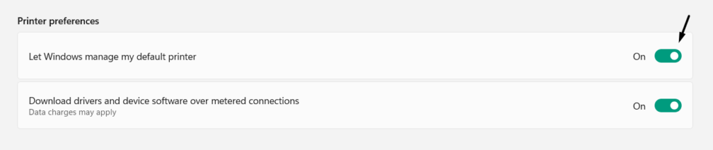 2.En elImpresoras y escáneresventana, debajoPreferencias de impresora, desmarque la siguiente opción:
