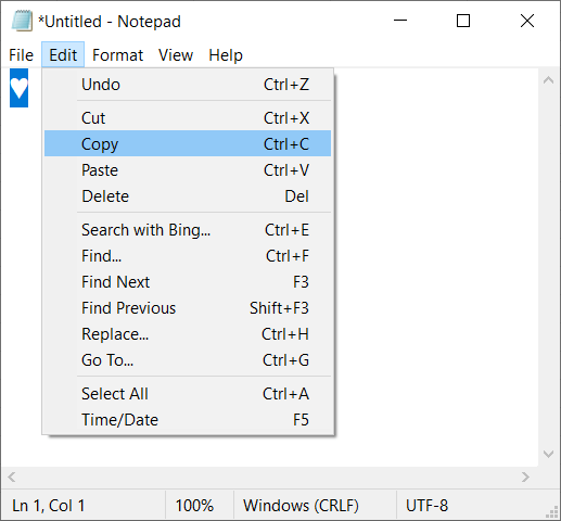 - Seleccione el símbolo que desea usar como viñeta desde otro lugar de su computadora. Luego cópialo usando el menú o el atajo de teclado.Ctrl+Cen Windows oComando + Cen Mac.