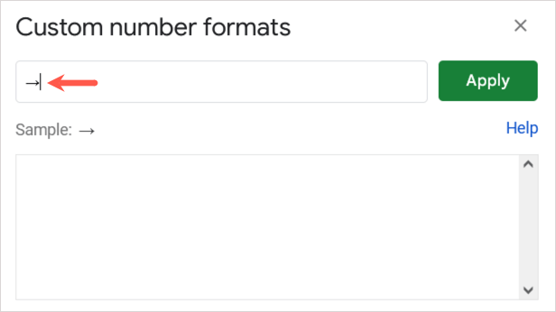 - Cuando se abra la ventana Formatos de números personalizados, ingrese el símbolo que desea usar en el cuadro en la parte superior. Puede utilizar un asterisco, un guión o pegar un símbolo especial como se describió anteriormente.
