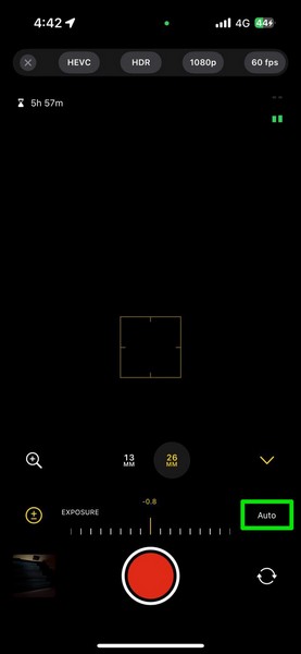 Sin embargo, si desea ajustar aún más la exposición, simplemente puede tocar elBotón automáticoen el borde derecho paracambiar a controles manuales.