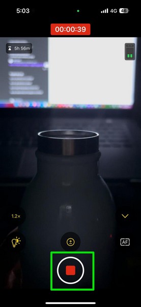 Una vez que haya terminado de grabar su video en la aplicación Final Cut Camera en su iPhone, puede tocar elbotón de paradapara detener la grabación.