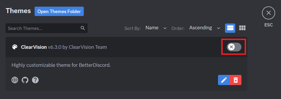 6.Pegue el archivo copiado en la carpeta Temas y regrese a Discord.