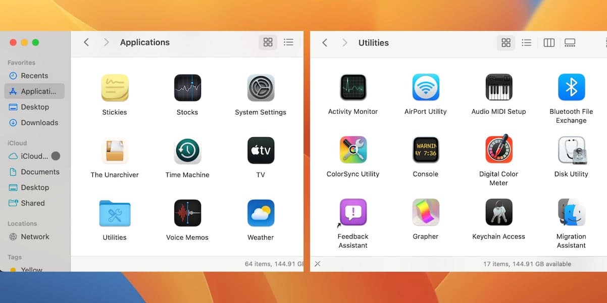 - En Mac, abra el Asistente de migración a través de Finder > Favoritos > Aplicaciones > Utilidades > Asistente de migración.