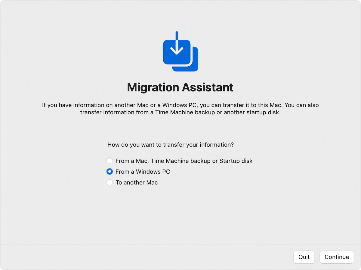 - Instale Migration Assistant en una PC con Windows para macOS Ventura y macOS Monterey desdeaquí.