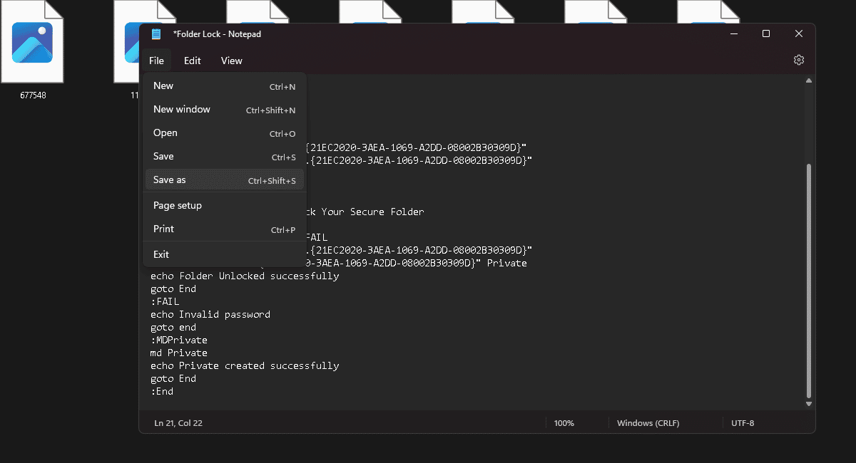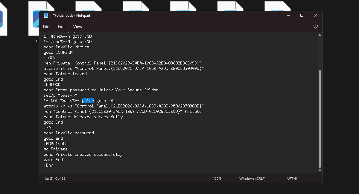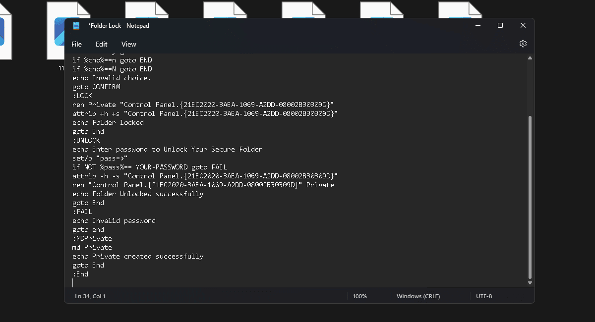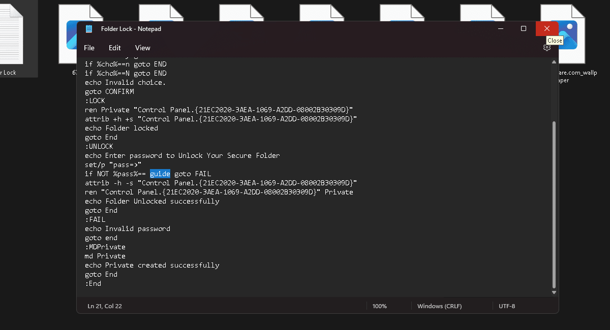 - Recuerde hacer doble clic en el archivo por lotes para bloquear su carpeta antes de cerrarla.