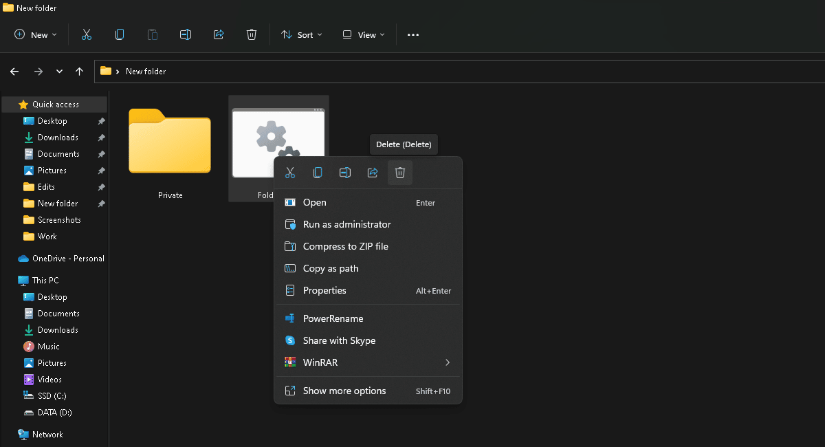 - Aparecerá un nuevo archivo por lotes > haga doble clic en el archivo por lotes > aparecerá una nueva carpeta como “Privada”.