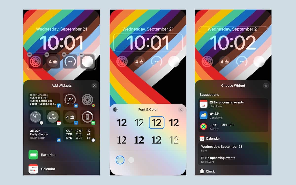 - Después de seleccionar los widgets y la fuente preferidos, toque "Listo" para personalizar el fondo de pantalla.