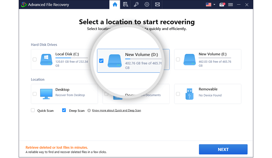 Preferimos utilizar Advanced File Recovery para todos los problemas relacionados con la recuperación de archivos. Esta increíble aplicación ha sido beneficiosa para nosotros en muchos casos en los que perdimos nuestros archivos tanto en unidades internas como externas. Aquí están los pasos: