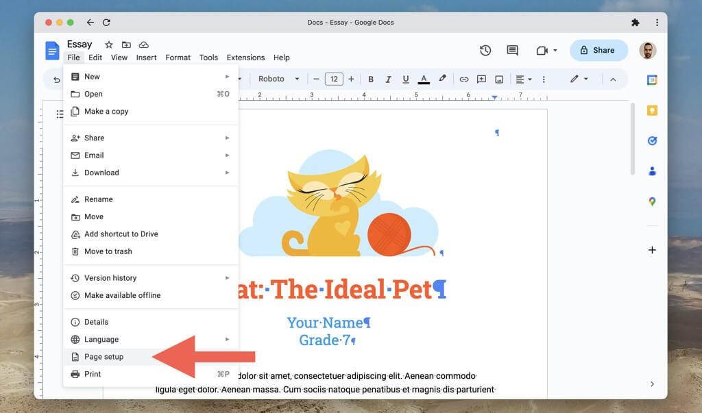 - Abre elmenú archivoy seleccioneConfiguración de página.