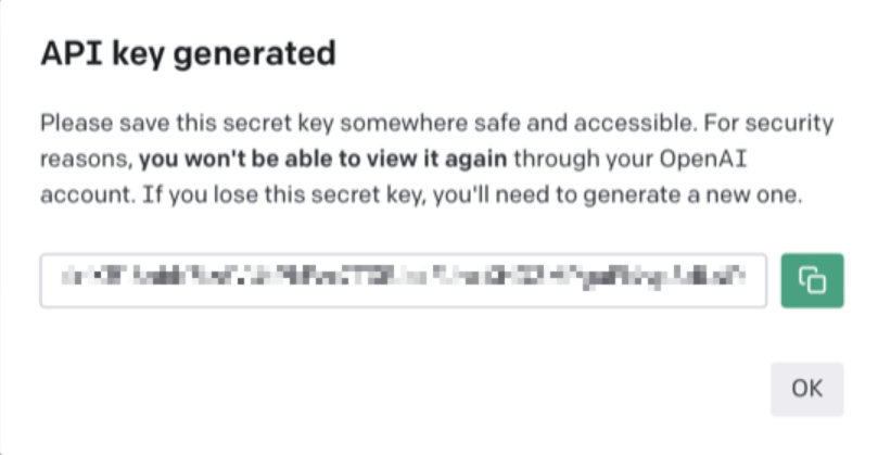 Paso 9:Ahora pegue su clave API de OpenAI (que generó en el Paso 4) en el campo de texto designado.