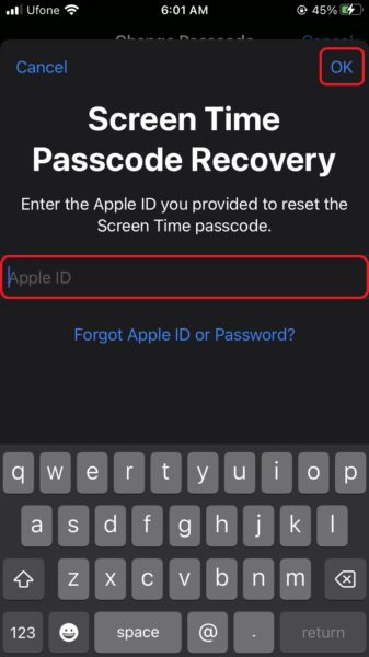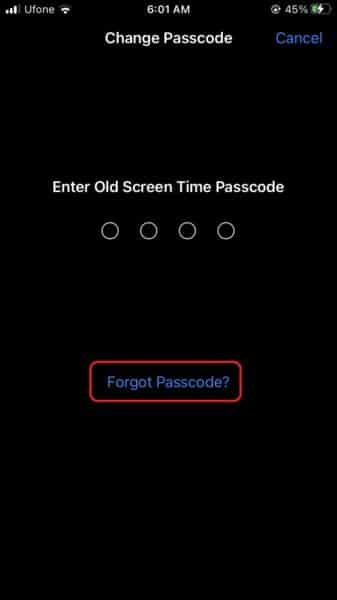 - Tu iPhone ahora te pedirá queIngrese la contraseña de tiempo de pantalla anterior.Grifo¿Has olvidado tu contraseña?para restablecerlo.