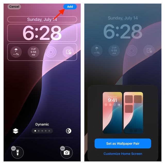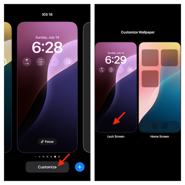 - Para modificar la apariencia del fondo de pantalla dinámico, presione el botón de suspensión/activación o el botón lateral de su iPhone para activar la pantalla de bloqueo -> Después de eso, debe mantener presionada la pantalla y luego tocar el botón Personalizar -> Seleccione la vista previa de la pantalla de bloqueo para continuar.