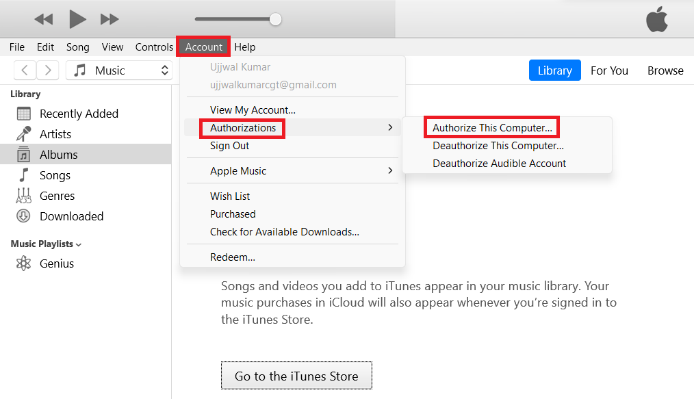 Para comenzar, deberá autorizar su PC con Windows mediante Apple iTunes.