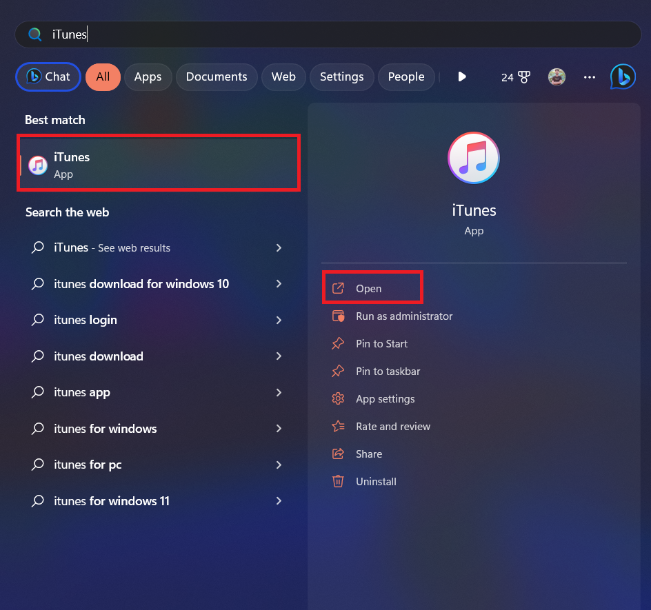3.Ahora, cierra elAjustesaplicación y abra laaplicación itunesen su PC con Windows.