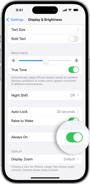 Ahora ha desactivado la pantalla siempre encendida en su iPhone 14 Pro. Ahora funcionará exactamente igual que en el iPhone 14 y modelos de iPhone más antiguos.