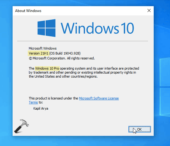 1.Antes de comenzar la actualización, puede verificar su versión existente de Windows 10 ejecutandowinverdominio.