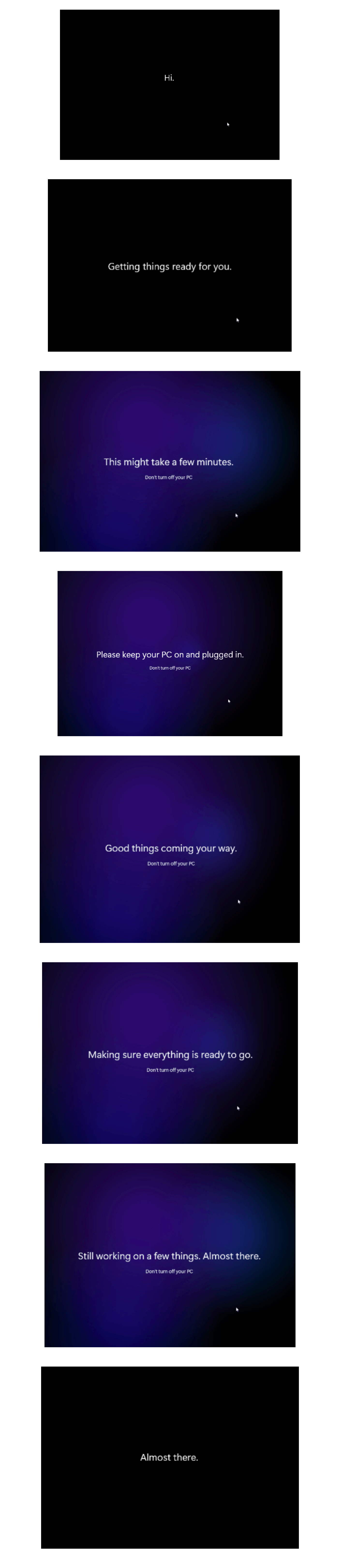 16.Después de reiniciar, Windows ahora migrará sus datos. Esta pantalla puede tardar algún tiempo dependiendo de los datos disponibles en su sistema.