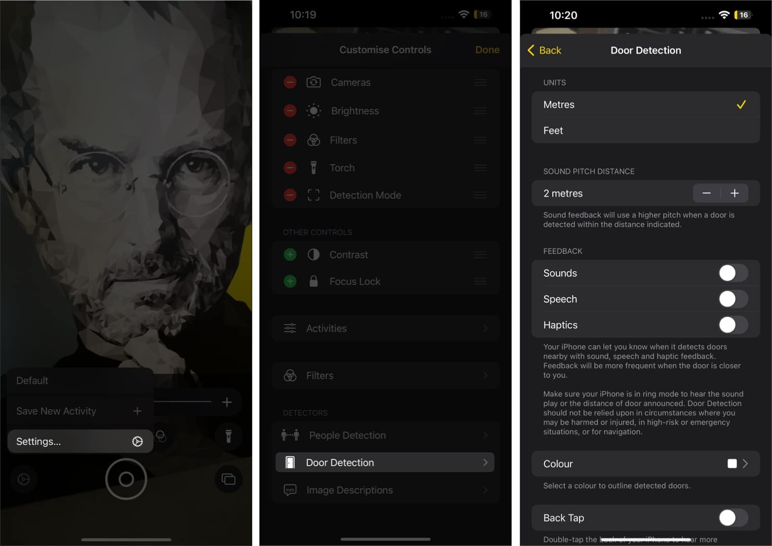 Verá un mensaje de confirmación en la parte superior. Para detectar puertas, acérquese a cualquiera y verá que su iPhone menciona la puerta; También mencionaría la distancia y el tipo de puerta.
