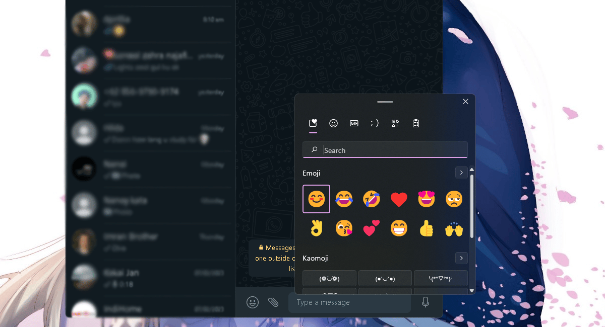 El teclado Emoji no solo contiene emoji sino que también ofrece kaomoji de estilo japonés, GIF para acortar el diálogo y transmitir más sin escribir mucho, y una función de búsqueda mejorada. Los emojis, pegatinas y otras listas pueden ser muy largas, por lo que es útil tener una función de búsqueda. La sección Historial del portapapeles ahora también está disponible dentro del teclado emoji, que es capaz de almacenar hasta 25 últimas entradas copiadas y admite texto, HTML e imágenes.
