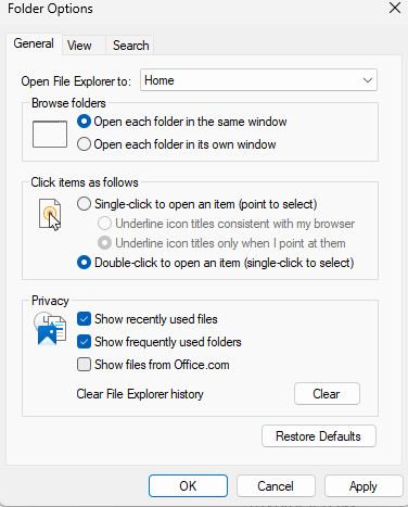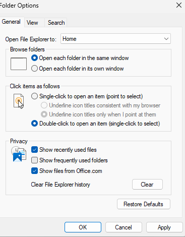 16. Restablecer la configuración predeterminada de Exploración de archivos