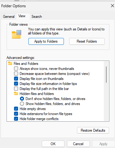 Para restablecer la configuración de la vista de carpetas a los valores predeterminados en el Explorador de archivos, siga los pasos a continuación: