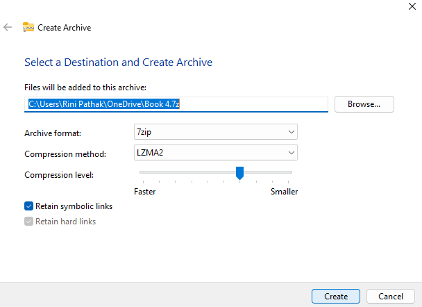Paso 4-Por último, el usuario puede realizar cambios en las opciones de formato de archivo, nivel de compresión, método de compresión, etc. según los requisitos para realizar cambios en su archivo comprimido.