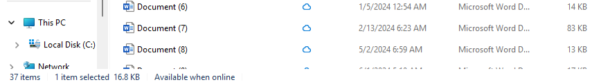 Para verificar si los archivos están disponibles solo en el almacenamiento en la nube o también están disponibles sin conexión, verifique los diversos íconos presentes cerca de los archivos, que son los siguientes: