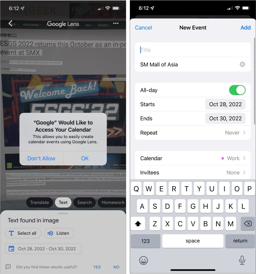 Otra característica útil es la posibilidad de agregar eventos a su calendario rápidamente. Puede ser un cartel de un próximo evento o un anuncio en las redes sociales. Simplemente tome una foto del anuncio y Google Lens detectará los detalles del evento y le pedirá que lo agregue a su calendario.