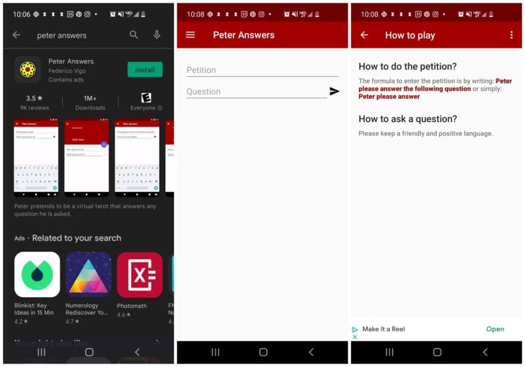 Si quieres gastarle una broma a tu amigo con tu teléfono móvil, puedes descargar la aplicación móvil Peter Answers para tu teléfono Android. Actualmente, no hay ninguna aplicación de iOS disponible para Peter Answers.