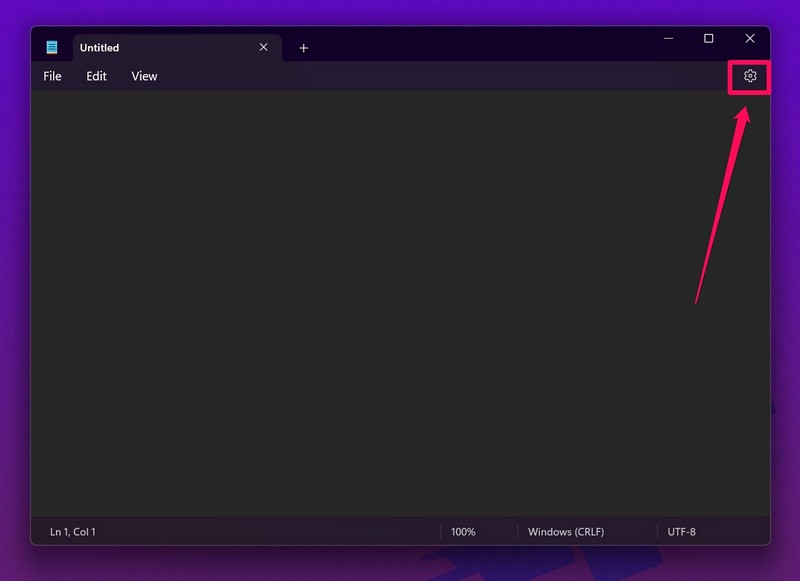 3.En la ventana del Bloc de notas,haga clic en el ícono de ajustesen la esquina superior derecha para abrirConfiguración del Bloc de notas.