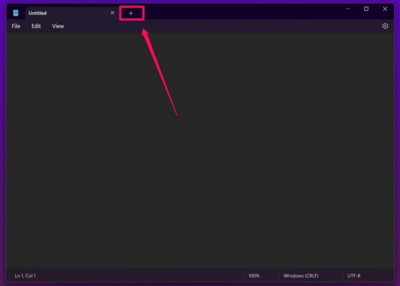 2.Desde aquí, puede hacer clic en elbotón +al lado de la pestaña actual para abrir otra pestaña. Aquí puede abrir otro archivo .txt.