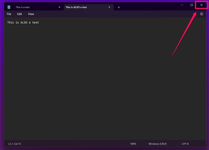 4.Y si quieres cerrar todas las pestañas de una sola vez, pulsa el botóncruz (x)botón de la aplicación Bloc de notas.