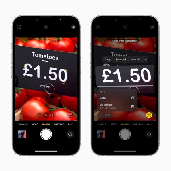 Live Text ahora es más inteligente que nunca y puede traducir texto en fotos, además de convertir moneda y realizar otras acciones rápidas. Live Text también se puede utilizar pausando un vídeo, lo que le permite reconocer el texto en el marco y permitir al usuario interactuar con él.